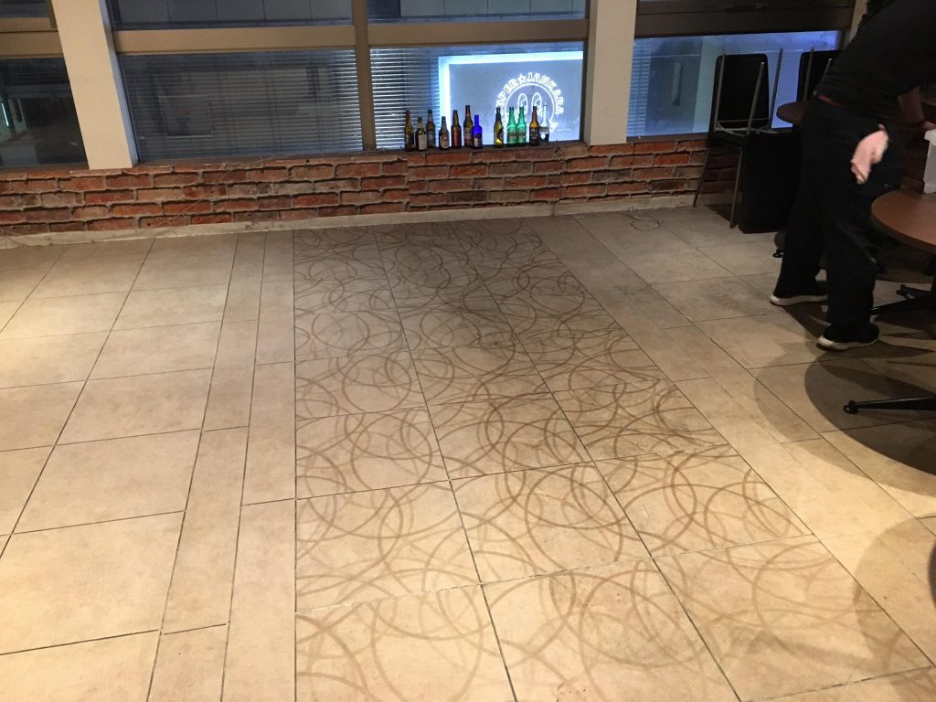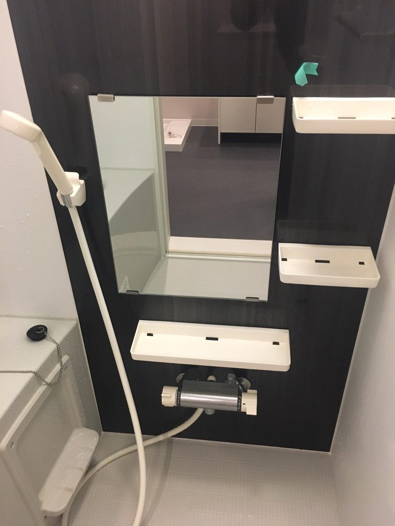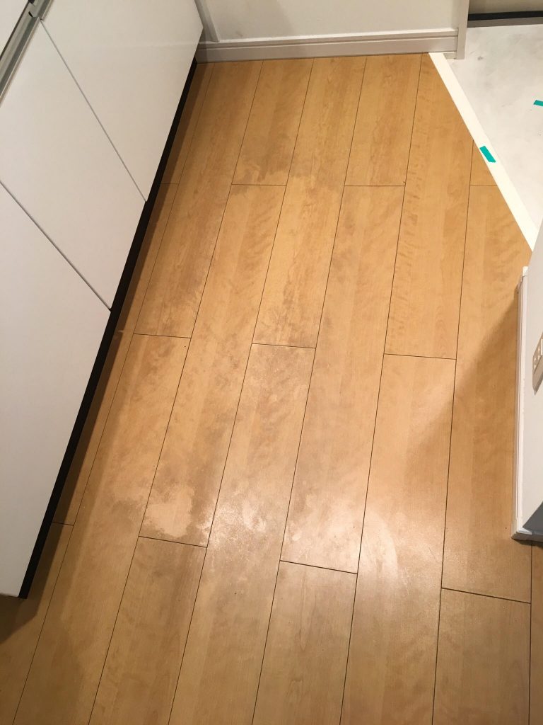 京都市四条河原町の飲食店の床洗浄 四条河原町の飲食店の床洗浄の写真です。 写真の左側半分が洗浄後、右側はこれからです。 賃貸マンションの床のワックスがところどころハゲている箇所の写真です。 東大阪市で作業前の写真です。 一旦古いワックスを剥がして、新しくワックスをかけます。 堺市堺区の賃貸マンションの浴室カガミの写真です。