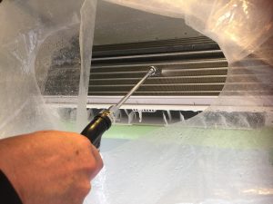 東大阪市柏田西でエアコン洗浄中!おまけにオゾン消臭!
